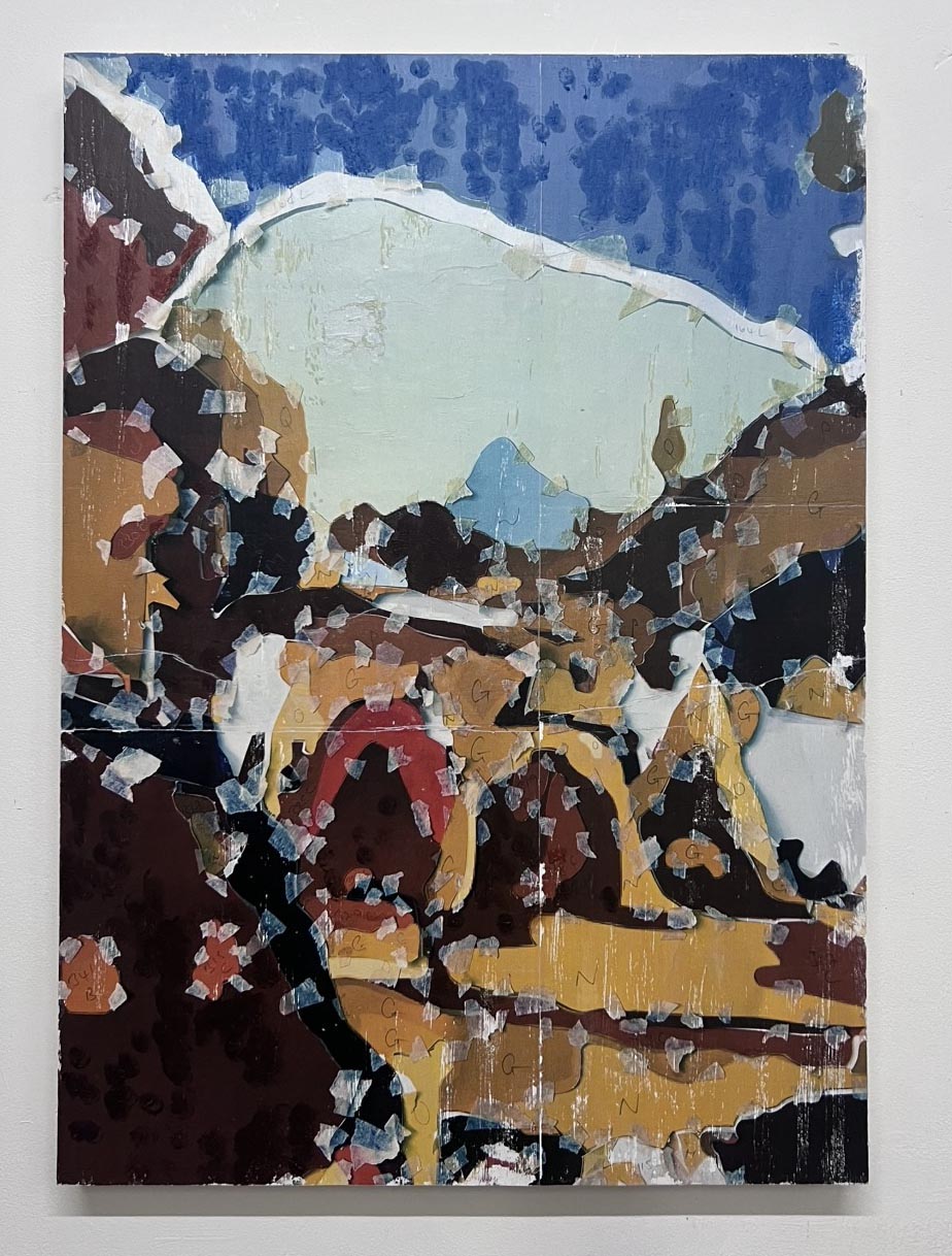 Carrie’s practice explores how emotional life is shaped and carried through images by re-staging figures from lesser-known historical paintings whose gestures persist across time. Her process moves from digital intervention to cutting, transfer-printing, abrasion and over-painting. Visible seams, pressure and wear record labour and decision-making. More recently, she has begun applying paint into surface grazes as an ointment-like gesture, treating repair as an active, embodied act in response to damage. Psychoanalytic thinking informs her attention to recurrence, resistance and the unresolved. Carrie holds an MA in Print and a Postgraduate Diploma in Art & Design from the Royal College of Art. Previously, she trained and worked in theatre design, and in 2024 was shortlisted for the V&A Adobe Creative Residency Programme. www.carrieannstein.co.uk @carrieannstein