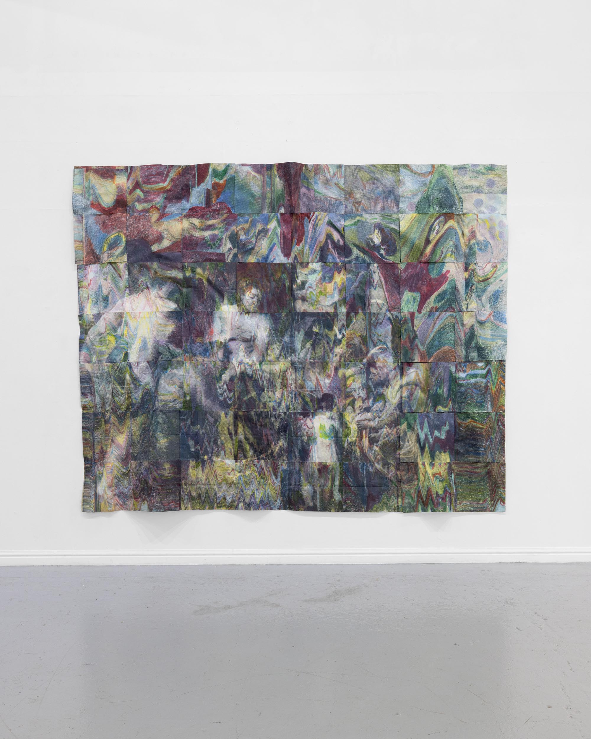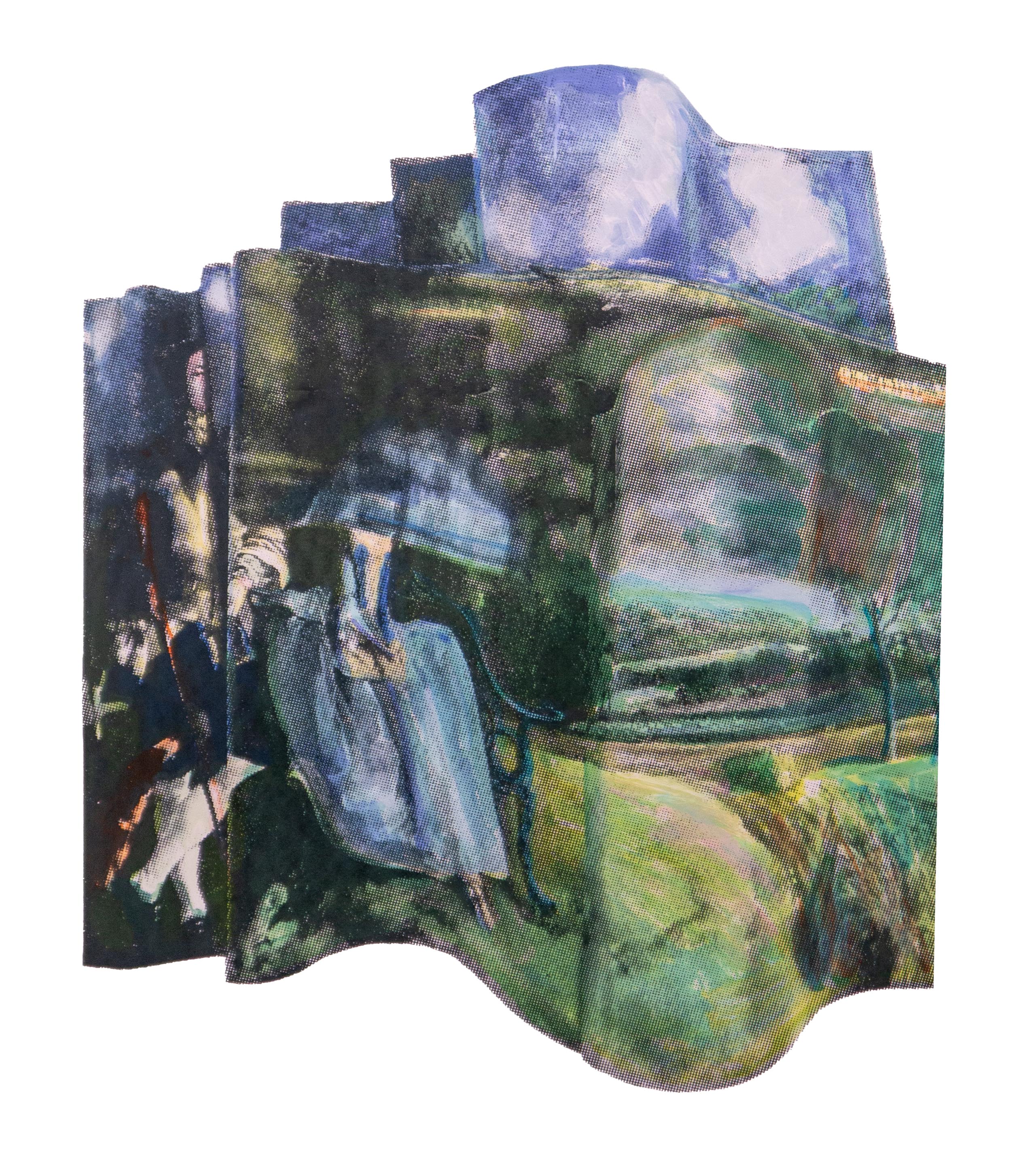 Caroline’s practice navigates the space between the physical and digital, where history is fragmented and reimagined into new contemporaneous forms. She treats the museum like a garden, a site of cultivation, harvesting artifacts and imagery "ripe for the picking” to reflect on her personal history and our collective moment. Time jumps to reveal anxiety, fragments as we glimpse the immensity of digital time, and backward glances to grasp at something long forgotten or never known. Drawing, photography and painting begin the process, capturing fragments. Back in the studio, these are unravelled and reconstructed using a range of traditional and digital print techniques. Tension slides between the encounter with the scale of the work and the precarity of its materiality. Timelines fold; Baroque grandeur crumples and ancient forms disintegrate. Caroline uses the language of error; the slip and blur of the digital glitch to create chromatic fissures which dissolve the usual boundaries between past and present, object and image, physical and digital. Caroline completed a master’s in Fine Art Print at the Royal College of Art, 2023. @caromacstudio