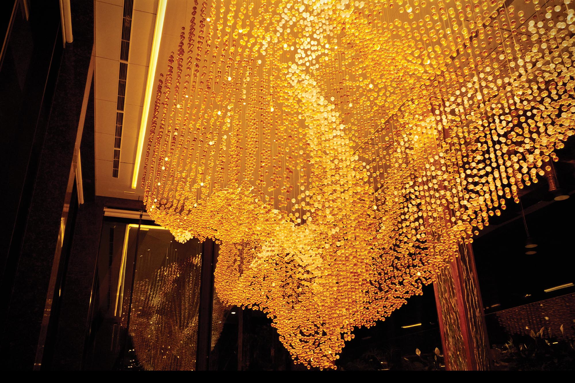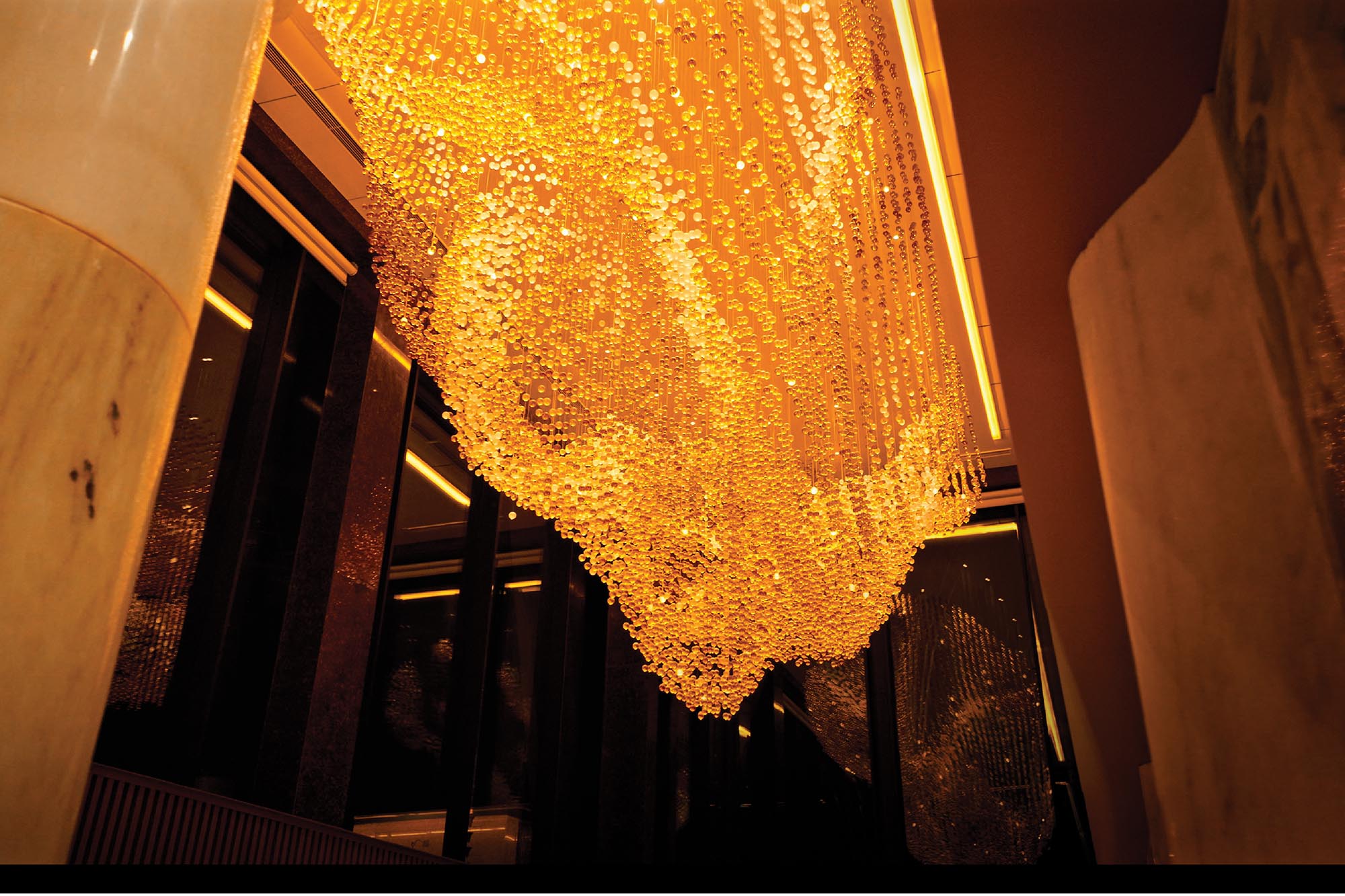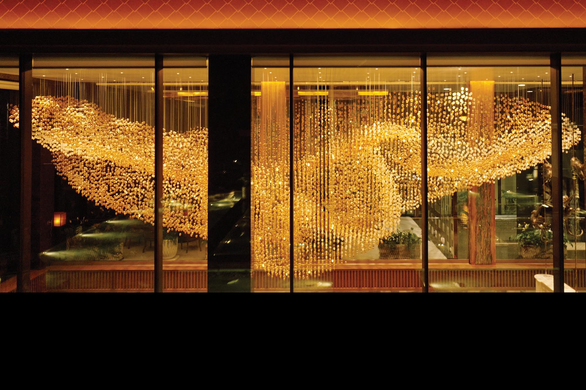 In 2025 designer George Singer (6-203) created Lua - a suspended light installation capturing the graceful movement of silk, commissioned for a private residence in North Vietnam. Lua is made from over twenty thousand solid glass balls, each meticulously hand-painted in shades of amber and frosted white. Its form was inspired by the natural flow of silk, with gentle undulating curves and sweeping folds that create a sense of elegance, serenity, and grandeur. Lua has since won three prestigious design awards; a Red Dot Award, an International Architecture and Design Award, and a Lighting Design Award. Designed in collaboration with digital artists Onformative, Lua was developed using advanced simulation technology that translated the movement of silk into a sculptural form impossible to create by hand. The placement of each glass ball is guided by the 'tension' within the digital silk model, merging craftsmanship with cutting-edge technology. Illuminated from above by John Cullen spotlights and lit from within by hundreds of fibre optic lights, Lua offers a dynamic lighting experience — from soft, tranquil evening mode to vibrant party mode — all controlled via a wall-mounted iPad. Lua represents the future of suspended sculpture: a seamless fusion of technology, artistry, and contemporary beauty. Lua is the Vietnamese word for silk. Watch the short film (3 min 41 seconds) here: vimeo.com/1136108256 Watch the full film (8 min 46 seconds) here: https://vimeo.com/1136588879 Credits: Design in collaboration with Onformative Spotlights by John Cullen Lighting Light controls by Harish Persad Film and stills by Matthias Hoene
