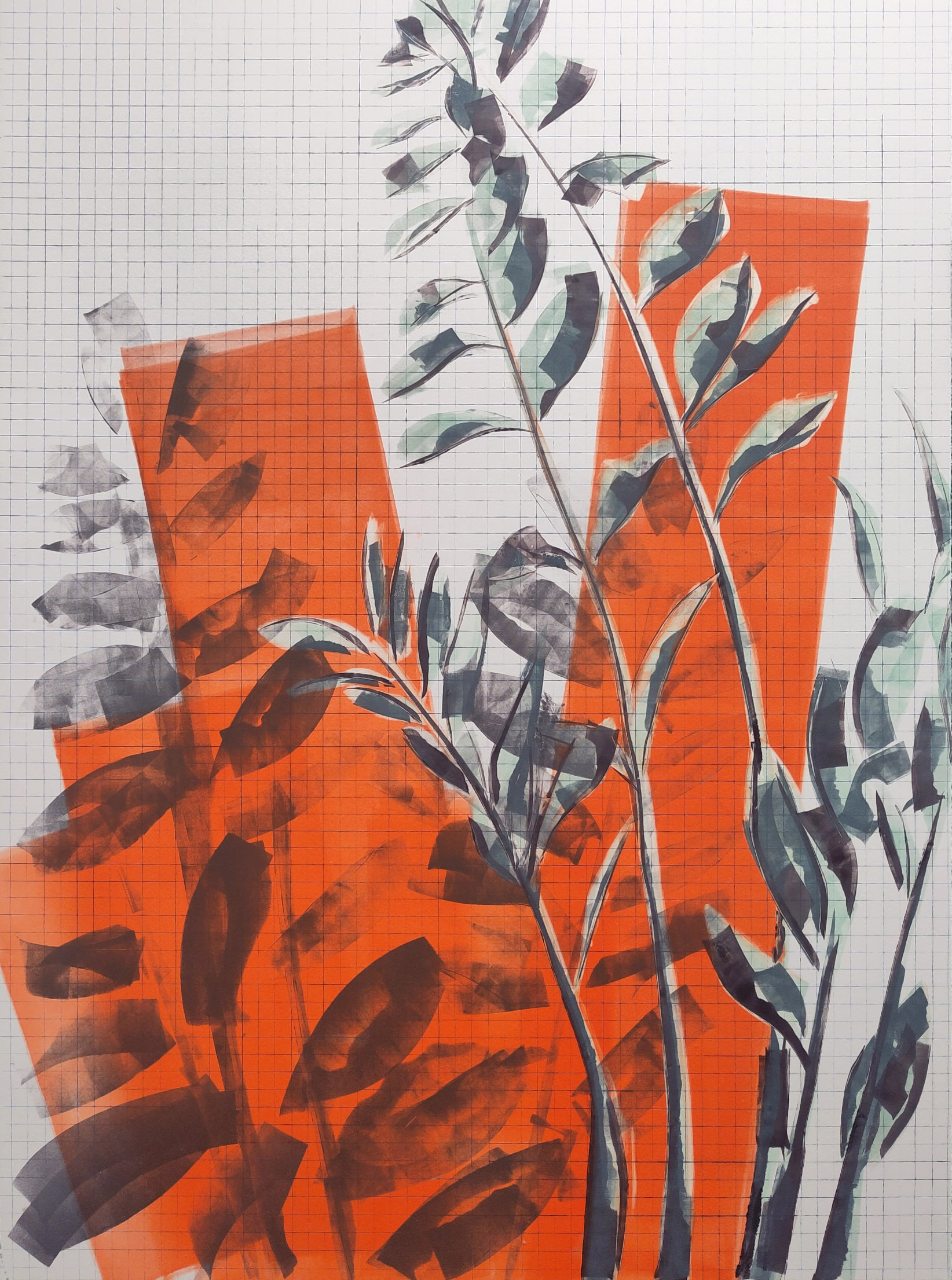 Thames-side Print Studio is proud to present her newest body of work, ‘Improvisations’. Plant matter collected during her daily commute along the Thames Path is deeply etched into large steel plates using acrylic grounds and saline sulphate solution. The plates are printed in small editions, and then form a library of imagery, surface and texture that can be used over and over again. These improvisations are developed directly on the press and result in unique prints in sequence, a composition that is practiced and changed with each performance, akin to music as much as art.