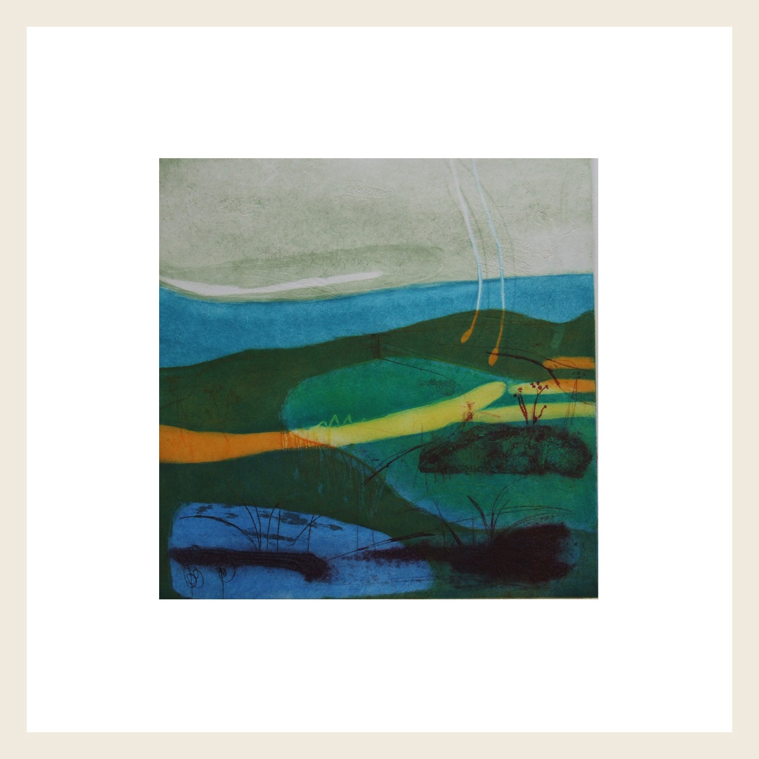 Louise’s prints and paintings are primarily concerned with the landscape. Some are based on childhood memories, reflecting on the countryside and coast of the west of England where she spent her early childhood. However some of the prints are created from small paintings and drawings made on location in sketchbooks.