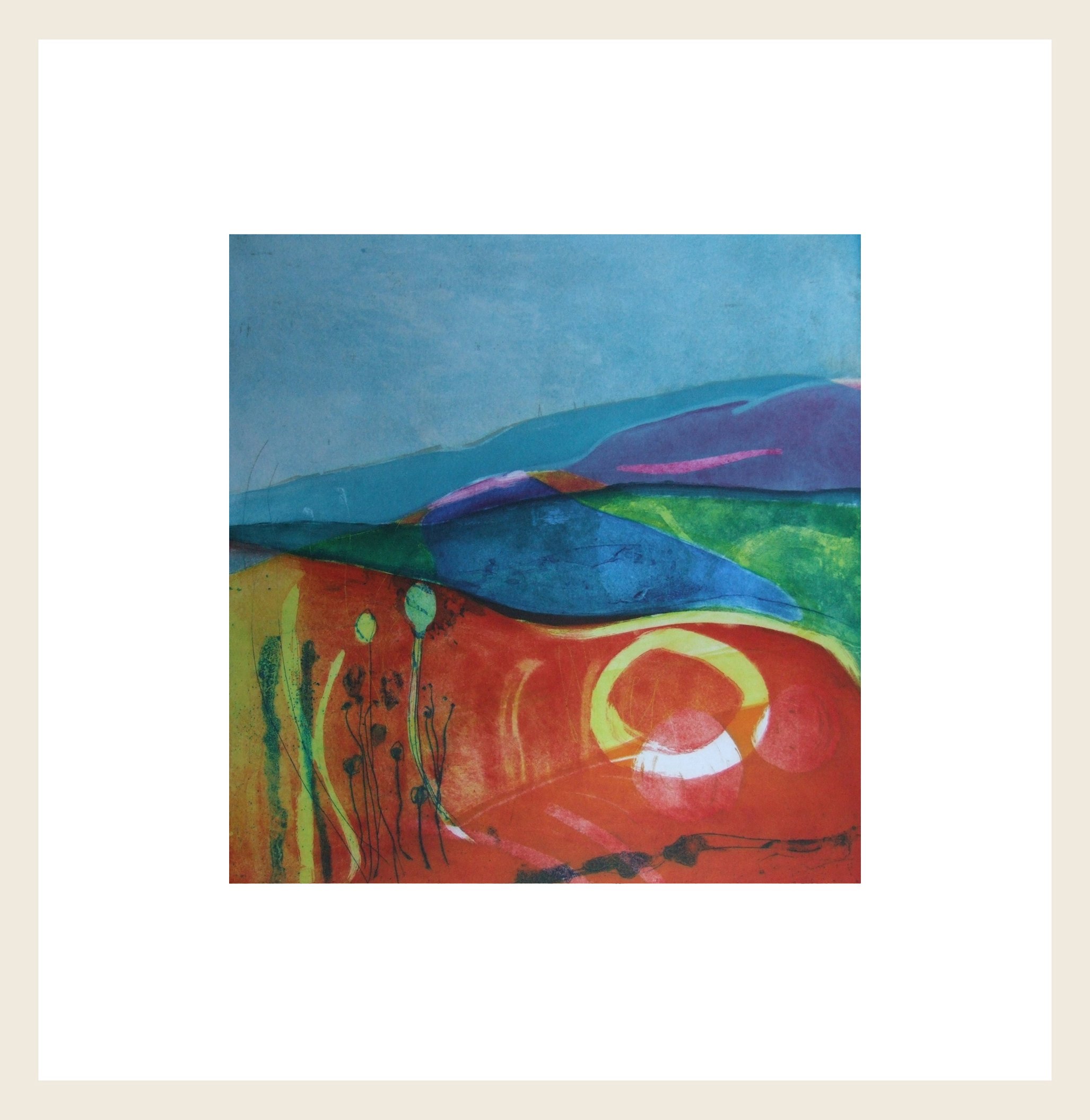 Louise’s prints and paintings are primarily concerned with the landscape. Some are based on childhood memories, reflecting on the countryside and coast of the west of England where she spent her early childhood. However some of the prints are created from small paintings and drawings made on location in sketchbooks.