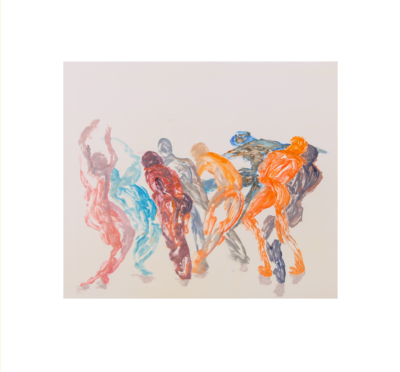 The moving figure, rhythm and energy are central to Sally McKay’s practice. Focusing on live performance and rehearsals, principally dance as her stimulus, she captures fleeting moments of movement through sketching figures in real time. The drawings and paintings made in front of the dancers in movement, inform her printmaking practice, taking them through to etchings and monoprints.