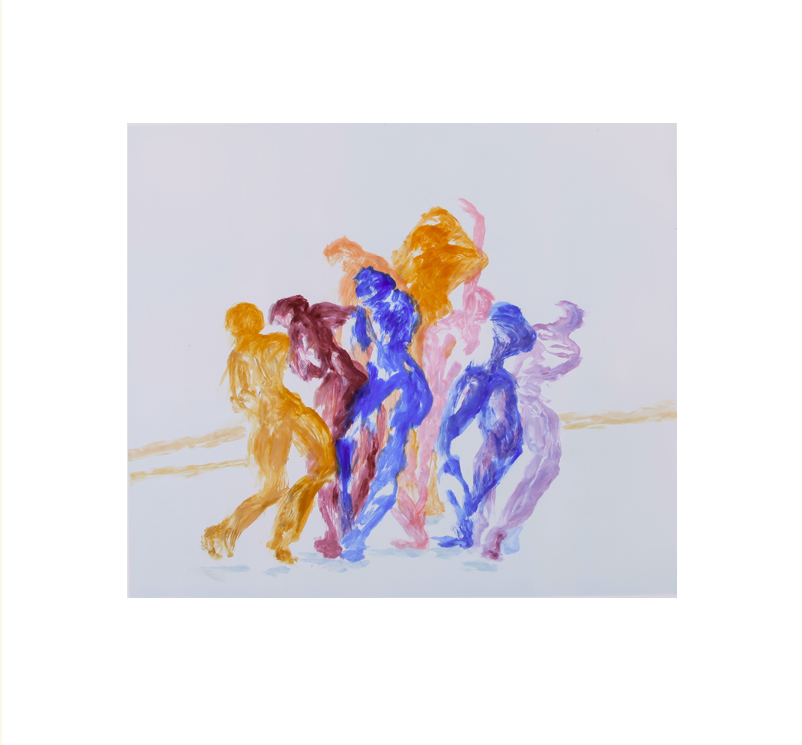 The moving figure, rhythm and energy are central to Sally McKay’s practice. Focusing on live performance and rehearsals, principally dance as her stimulus, she captures fleeting moments of movement through sketching figures in real time. The drawings and paintings made in front of the dancers in movement, inform her printmaking practice, taking them through to etchings and monoprints.