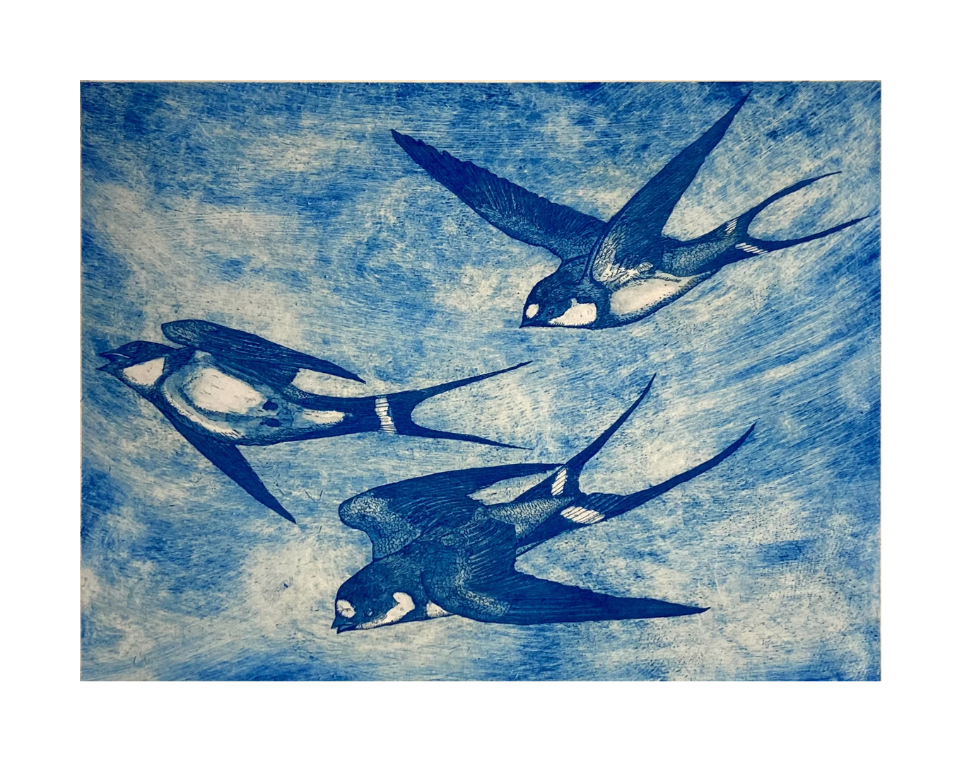 Artist Statement I think my aquatint etching print ‘A Screaming Frenzy of Swifts ‘ captures a great deal about my printmaking.  Capturing an image of wildlife in a split second amidst a myriad of a thousand things going on at the same time.  My work draws on my own experiences  in the wild-outdoors and I like to capture the brief, infinitely small second of recognition between the bird and the human.