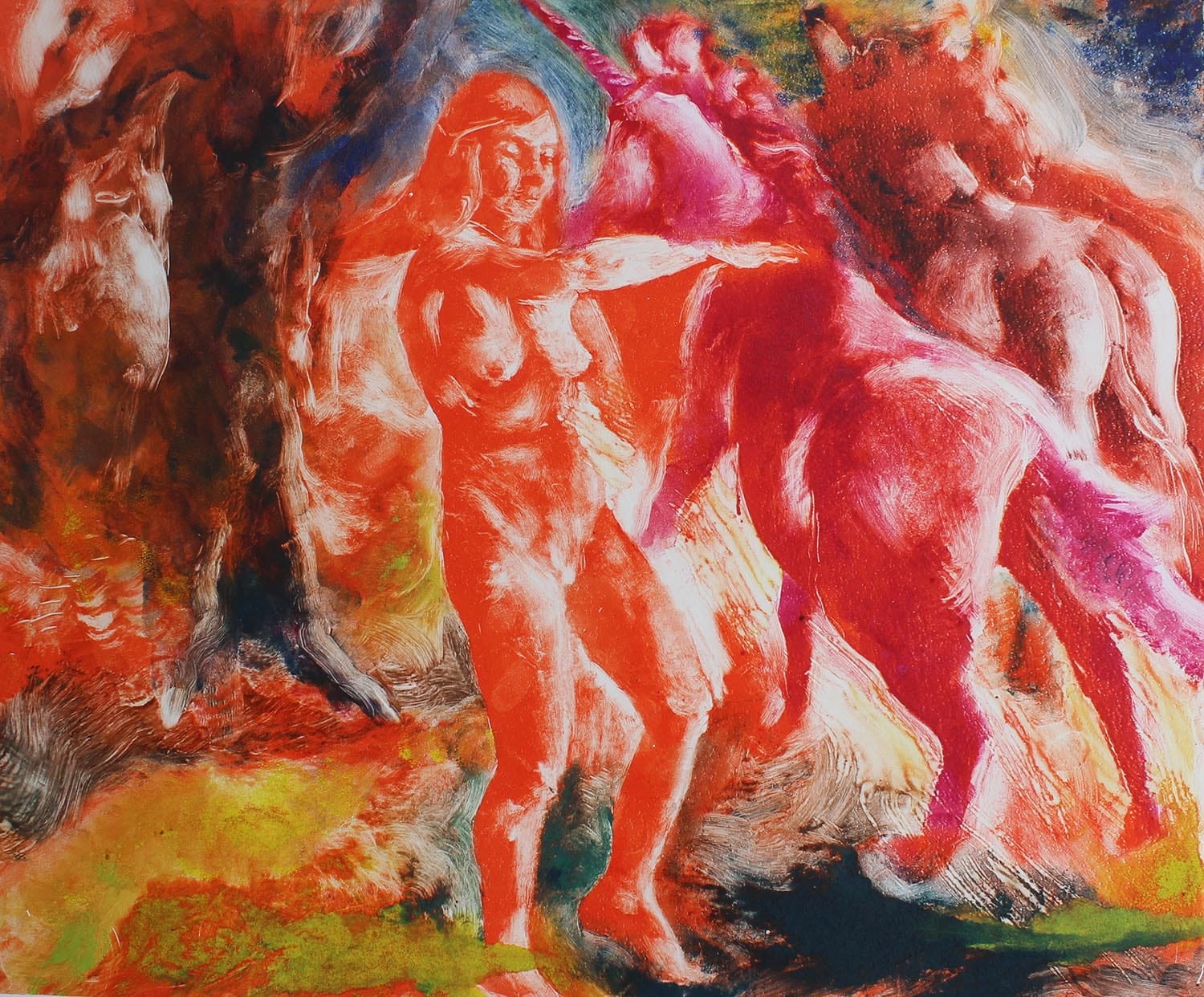 Painter and printmaker Clare Dudeney (TB-265) has curated an exhibition exploring the sensory experience of sleep, dream narratives and internal visual landscapes. Twenty artists share with vividness and wonder the internal world of sleep, treated with the same careful observation and curiosity as the physical world. Featuring artists: Esra Alhamal, Becky Brewis, Ruth Calland, Regina de Barros Carvalho, Alisia Casper, Sophie Charalambous, Michael Chance, Clare Dudeney, Abigail Edgar, Aisha Farr, Bobbye Fermie, Christabel Forbes (TB-265), Dasha Klyachko, Emily Morey, Oliver Mulvihill, Veronika Peat, Amelia de Rougemont, Lottie Stoddart and Anthony Waters. Society in Sleep, is a talk with artists, psychologists and leading neuroscientists giving different perspectives on the role of sleep; what dreams say about us as individuals & wider society, is taking place on Thursday 28 September, 6-8.30pm. Free to attend. Sign up for the talk here Menier Gallery, 51 Southwark Street, London SE1 1RU. Open daily 26-30 September, 11am - 6pm. www.meniergallery.co.uk Images: Clare Dudeney, The flying man, monotype on paper, 41 x 59cm, 2017 Clare Dudeney, The Unicorn (After William Blake, the Horse), monotype on paper, 41 x 33.7cm, 2017 Clare Dudeney, Box of dreams, onotype on paper, 60 x 76 cm, 2017 Clare Dudeney, Magical creatures, monotype on paper, 33.5 x 41cm, 2017 Clare Dudeney in Thames-Side Print Studio adding the finishing touches to a monotype, September 2017 Images courtesy the artist