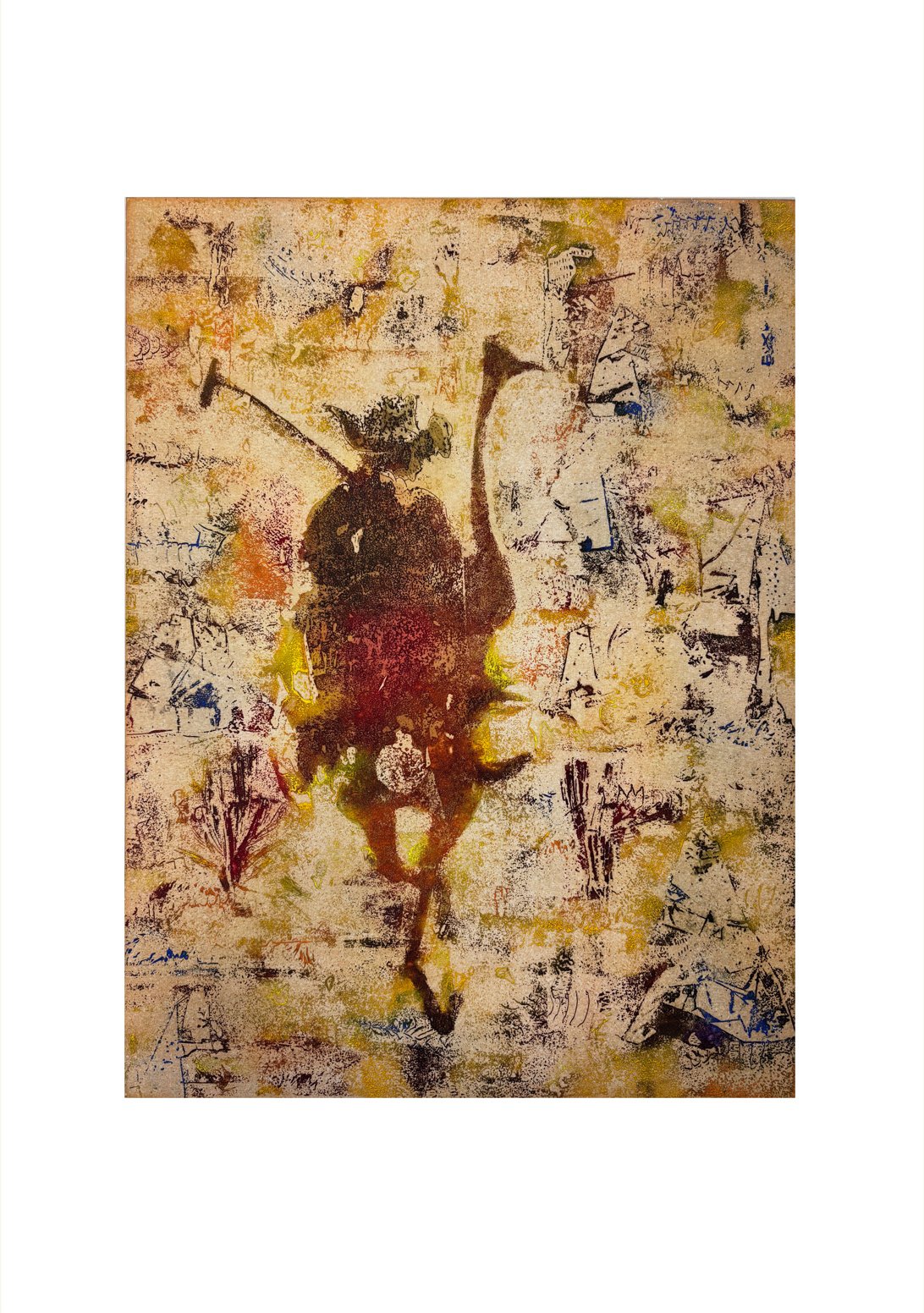 Her atypical utilisation of tiny inking spatulas allows for the production of intricate and uniquely multi-chromatic prints from a single plate. Her work tells colourful stories and iconises plastic ideas in an expressive manor.