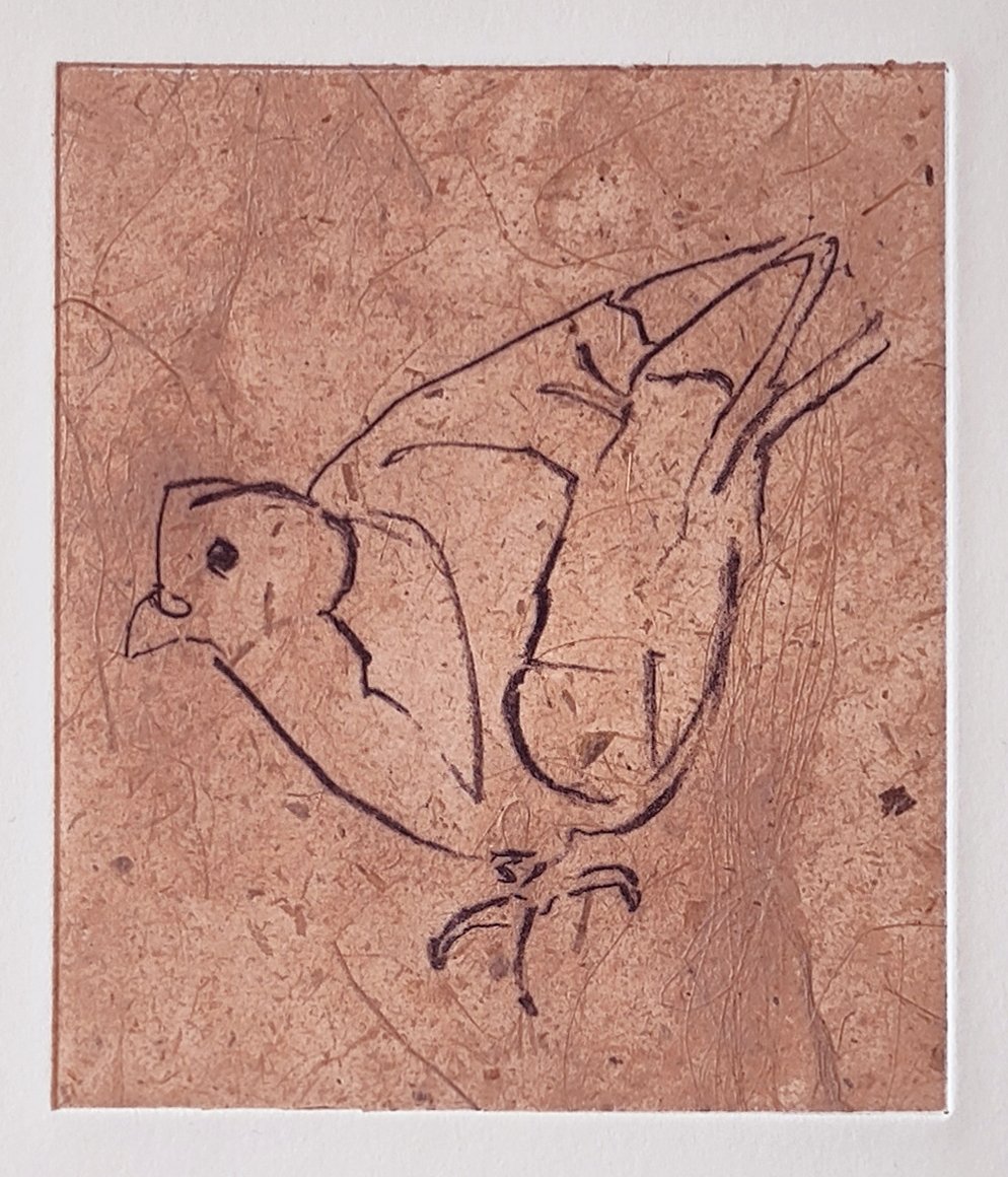 ‘Pigeon (sketch on lokta banana) (unframed)’