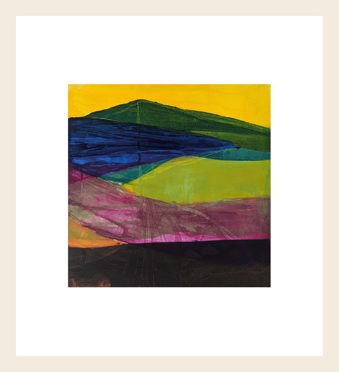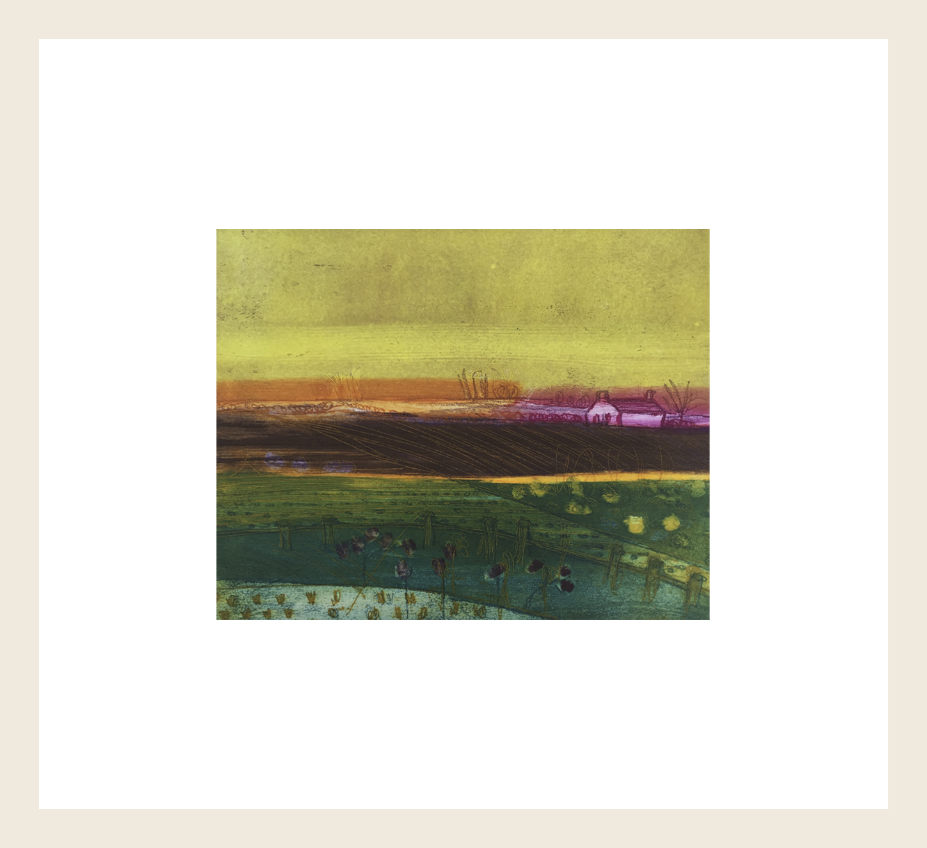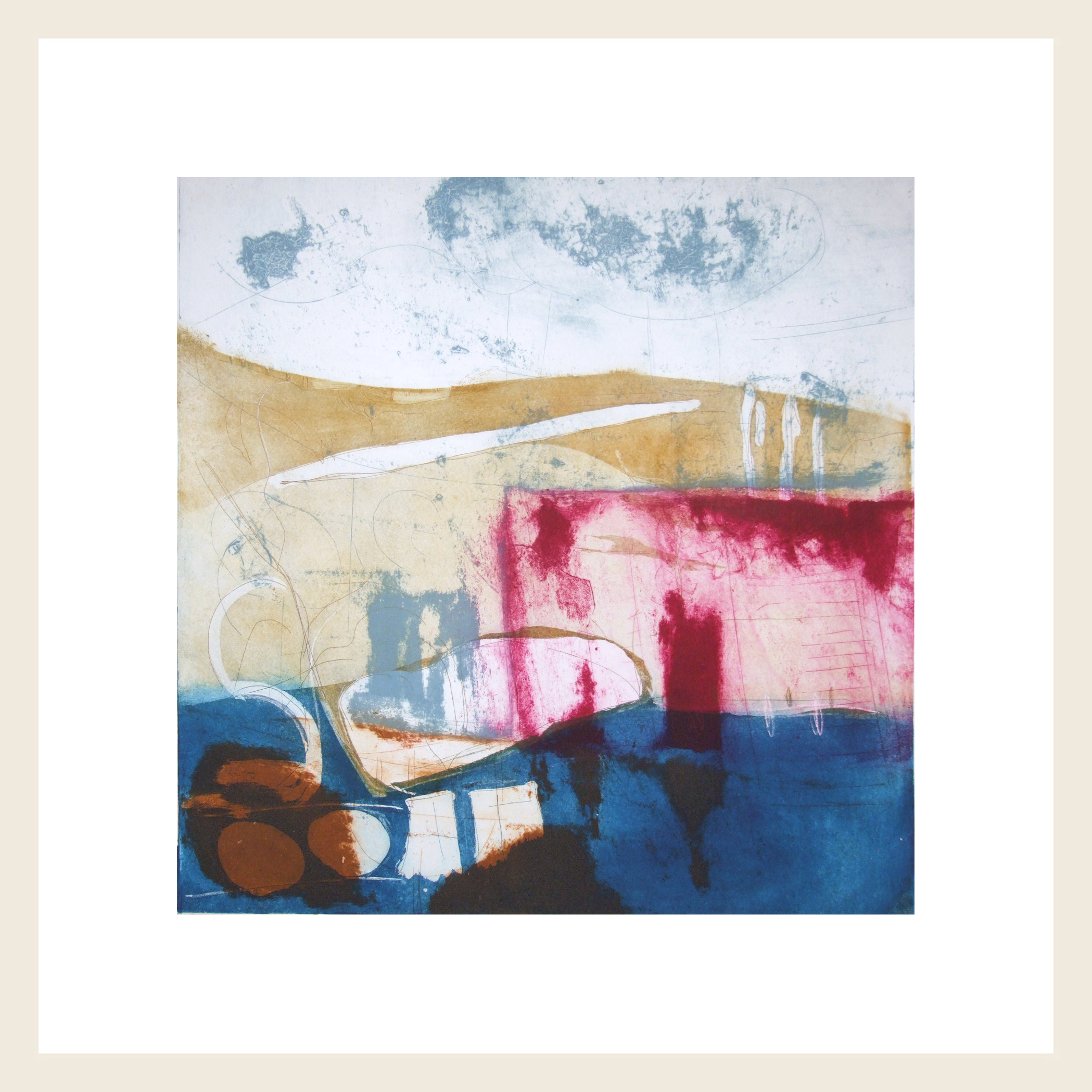 Louise’s prints and paintings are primarily concerned with the landscape. Some are based on childhood memories, reflecting on the countryside and coast of the west of England where she spent her early childhood. However some of the prints are created from small paintings and drawings made on location in sketchbooks.