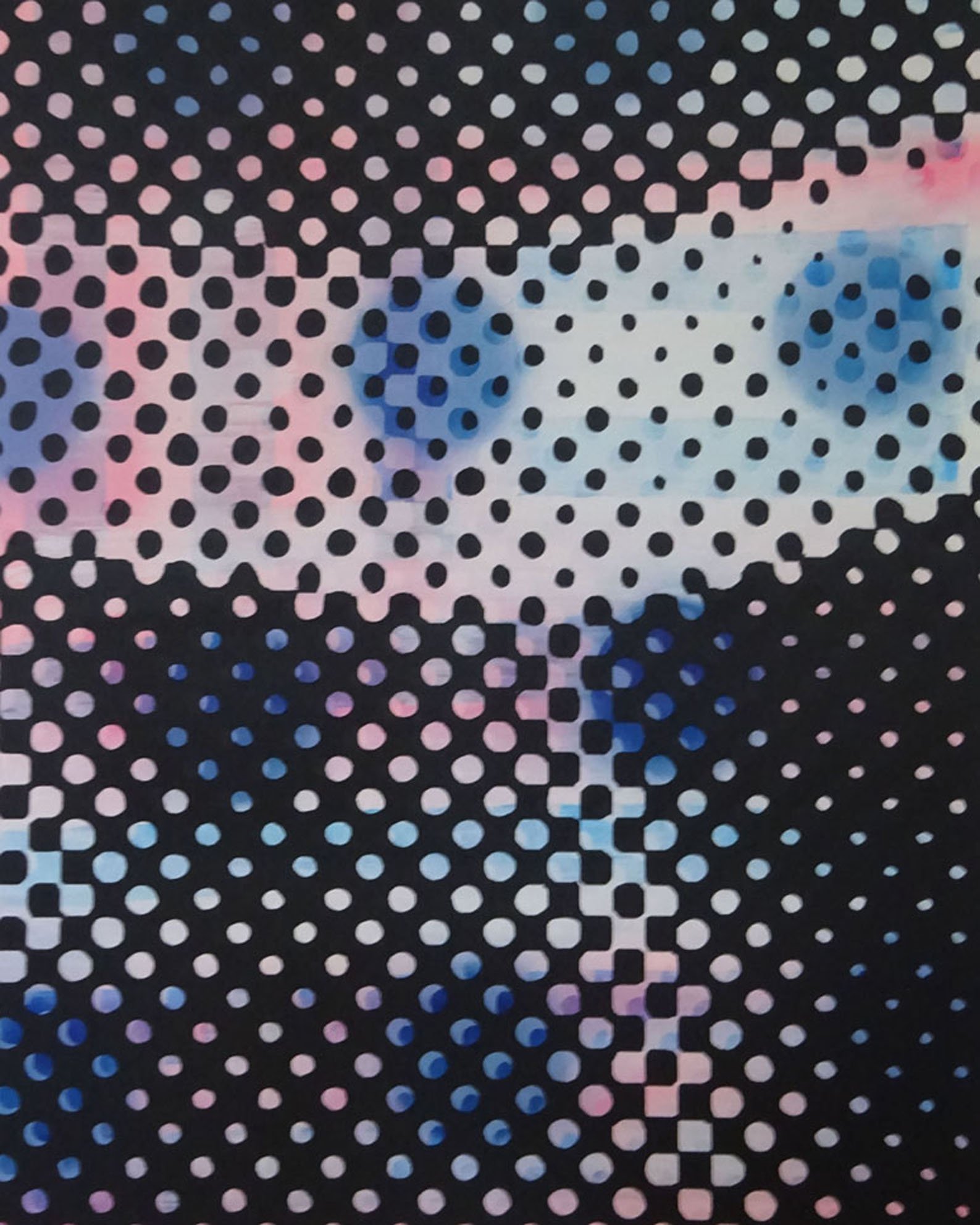 The darkroom process to make photomechanical stencils often involves the use of the Benday dot screen to realise the printed image from many of the photographs she works from. The Polke Series was made as homage to this process and is achieved by greatly magnifying these dots. The Polke Series was inspired by an exhibition of Sigmar Polke’s work.
