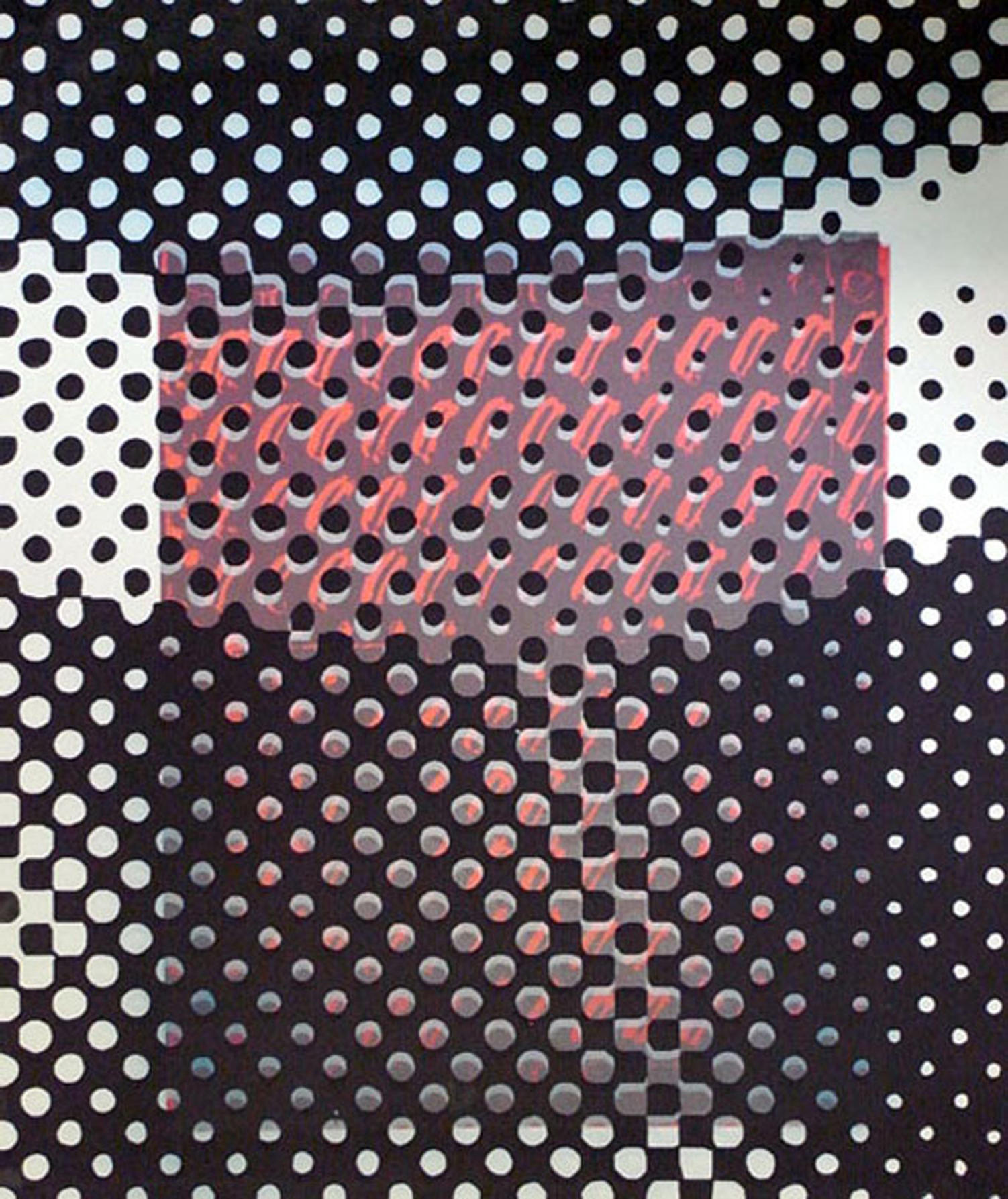 The darkroom process to make photomechanical stencils often involves the use of the Benday dot screen to realise the printed image from many of the photographs she works from. The Polke Series was made as homage to this process and is achieved by greatly magnifying these dots. The Polke Series was inspired by an exhibition of Sigmar Polke’s work.
