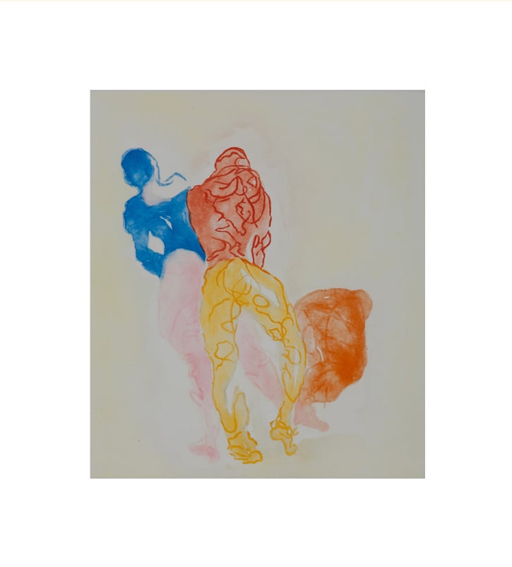 The moving figure, rhythm and energy are central to Sally McKay’s practice. Focusing on live performance and rehearsals, principally dance as her stimulus, she captures fleeting moments of movement through sketching figures in real time. The drawings and paintings made in front of the dancers in movement, inform her printmaking practice, taking them through to etchings and monoprints.