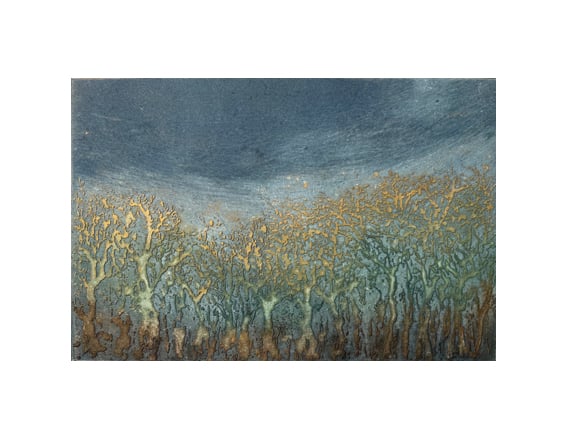 She uses various printing techniques which allow her to explore rich textures, shapes and nuanced colours. Every print she creates is unique as she uses multiple layers of hand mixed colours and torn pieces of paper on each print.